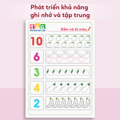 Học liệu tập đếm số cho bé 3-4 tuổi giúp bé nhận biết số lượng & phát triển tư duy toán học