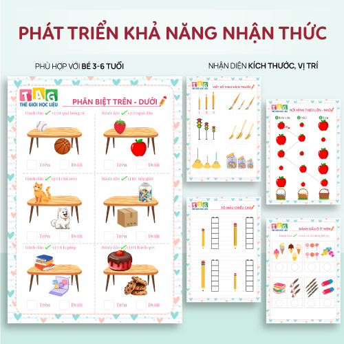 Học liệu kích thước vị trí rèn tư duy không gian cho trẻ 3-6 tuổi