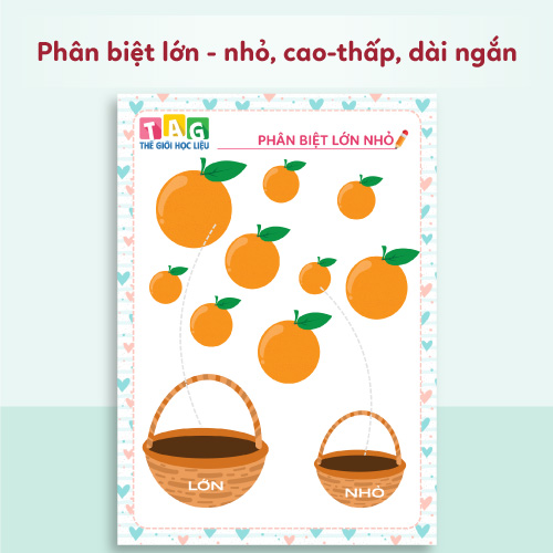 - Giúp bé so sánh phân biệt kích thước: Nhận biết rõ ràng các cặp khái niệm như lớn – nhỏ, dài – ngắn, giúp trẻ tư duy logic và phân loại sự vật.
