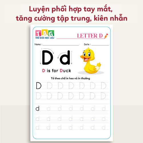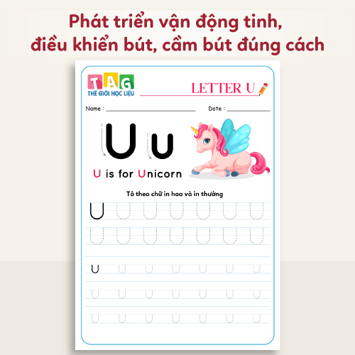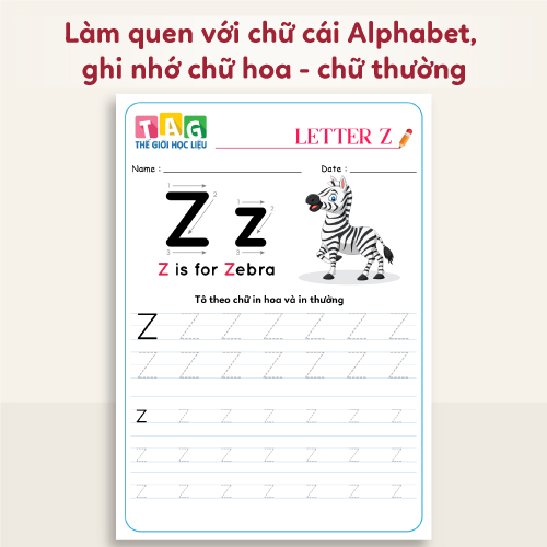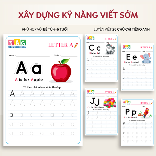 Học liệu luyện viết chữ cái tiếng Anh là bộ tài liệu giáo dục sớm giúp bé từ 4-6 tuổi làm quen với 26 chữ cái alphabet qua các hoạt động viết nét cơ bản, viết theo dấu mờ, nhận diện chữ in – chữ thường. Đây là công cụ hoàn hảo để hỗ trợ bé làm quen ngôn ngữ mới, rèn chữ đẹp, hình thành nền tảng học ngoại ngữ sớm một cách tự nhiên và hiệu quả.