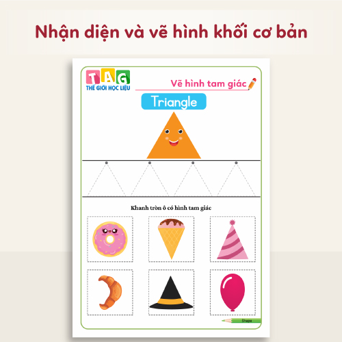 Học liệu nhận biết và phân biệt hình khối cơ bản, phát triển tư duy logic cho bé từ 2-6 tuổi.