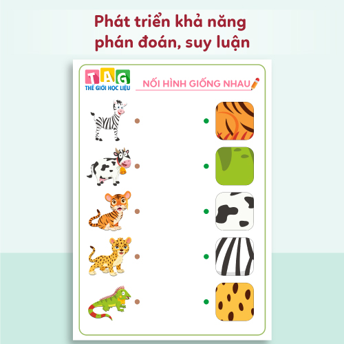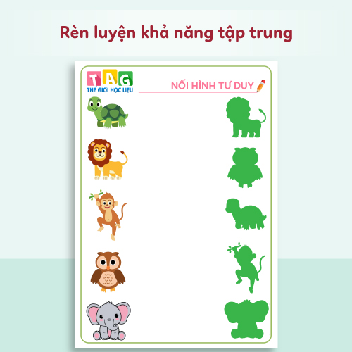 Học liệu nối hình với bóng shadow matching, phát triển tư duy qua cặp tương ứng cho bé từ 2-3 tuổi