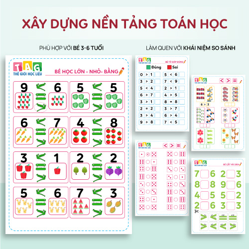 Học Liệu So Sánh Lớn Nhỏ Bằng Phát Triển Tư Duy Toán Học Cho Bé 3-6 Tuổi
