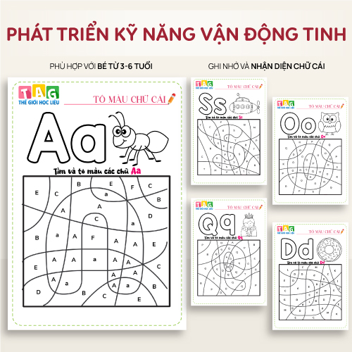 Học Liệu Tô Màu Chữ Cái Giúp Rèn Vận Động Tinh, Ghi nhớ Chữ Cái Cho bé 3-6 Tuổi