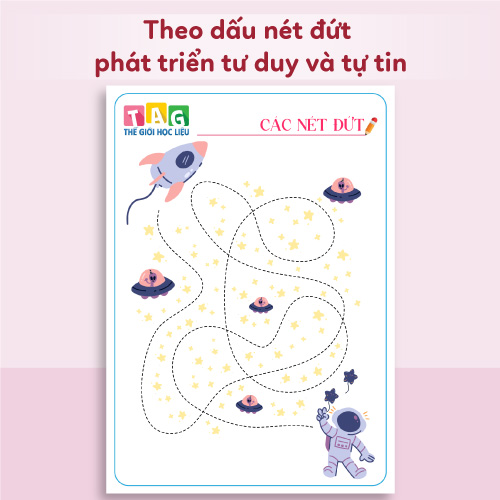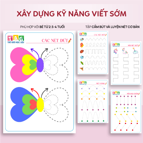 Học liệu tô vẽ theo nét đứt luyện nét cơ bản, phát triển kỹ năng viết cho bé từ 2-6 tuổi là công cụ lý tưởng giúp trẻ phát triển kỹ năng tiền viết, làm quen với bút và rèn luyện sự khéo léo của đôi tay thông qua các bài tập điều khiển nét bút có chủ đích. Được thiết kế theo phương pháp Montessori, bộ học liệu gồm nhiều chủ đề phong phú như nét thẳng, nét cong, nét xiên… kết hợp với hình ảnh ngộ nghĩnh, sinh động, phù hợp với tâm lý và khả năng tiếp nhận của trẻ nhỏ, giúp bé vừa học vừa chơi một cách hứng thú.