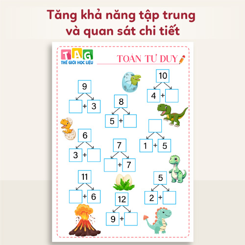 Học liệu Toán tư duy được thiết kế dành riêng cho trẻ mầm non và tiền tiểu học, giúp bé tăng phản xạ tính toán nhanh khi thực hiện các chuỗi phép tính cộng trừ. Bé sẽ rèn luyện khả năng tính toán nhanh, tư duy logic, khả năng so sánh và giải quyết vấn đề. Đây là nền tảng quan trọng giúp con tự tin hơn khi bước vào môi trường học tập chính thức.