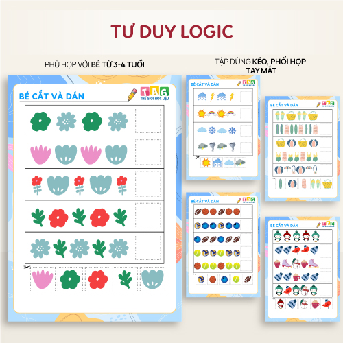 Học Liệu Cắt Dán Phát Triển Tư Duy Logic & Vận Động Tinh Cho Bé 3-6 Tuổi